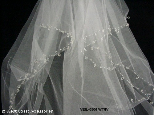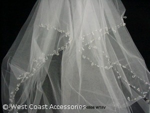VEIL WITH DANGLING CRYSTALS. AVAILABLE IN WHITE AND IVORY. FIRST LAYER:24.5" SECOND:36"