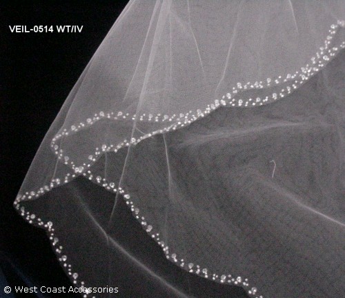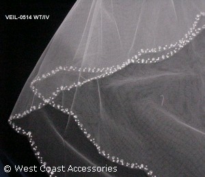 VEIL WITH BEADED EDGES. AVAILABLE IN WHITE AND IVORY. FIRST LAYER:22"SECOND: 33"