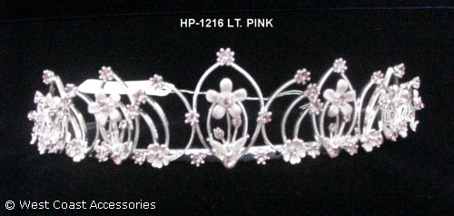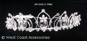 HEADPIECE WITH LIGHT PINK FLOWER DESIGNS AND LIGHT PINK RHINESTONES.